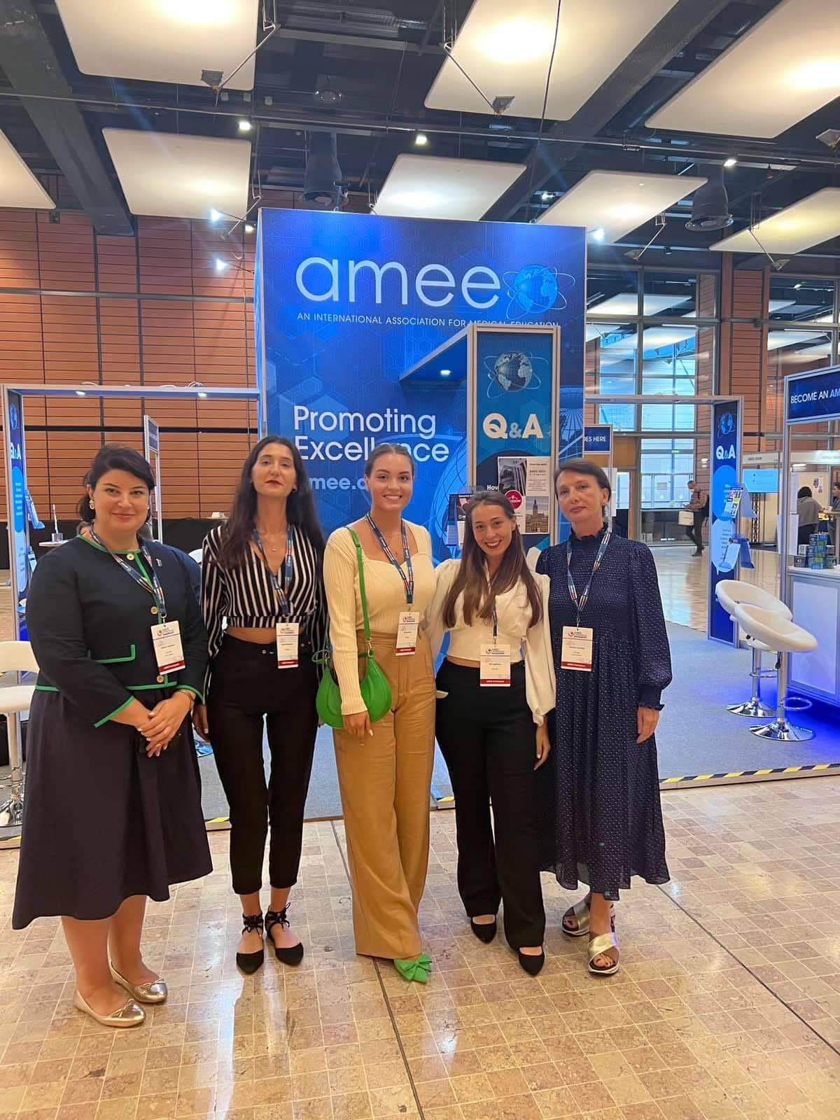 On August 27-31, 2022 AMEE (Association for Medical Education in Europe) organized an annual conference in Lyon (France). Tbilisi State Medical University, Faculty of Medicine students Elene Maisuradze, Veriko Revia and Nini Jgharkava are authors of the Project “First Steps in Medical Practice” which was announced as the winner project at the opening ceremony of the conference.