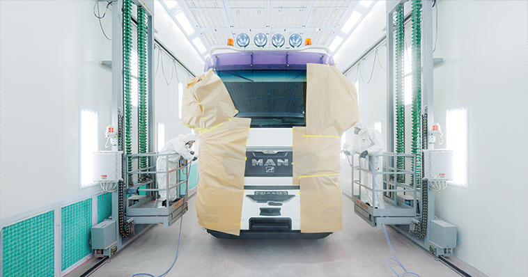This area includes a painting and body shop with no equivalent elsewhere in the region. The 22-meter-long workshop allows for the simultaneous painting of large vehicles.