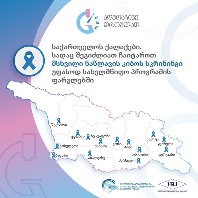 კიბოს სკრინინგის პროგრამა აქტიურად მოქმედებს საქართველოშიც. ძუძუს, საშვილოსნოს ხელის და მსხვილი ნაწლავის კიბოს სკრინინგი ქვეყანაში, შესაბამის ასაკობრივ ჯგუფებში, სრულიად უფასოა და პროგრამა ხელმისაწვდომია სხვადასხვა რეგიონის არაერთ ქალაქში.