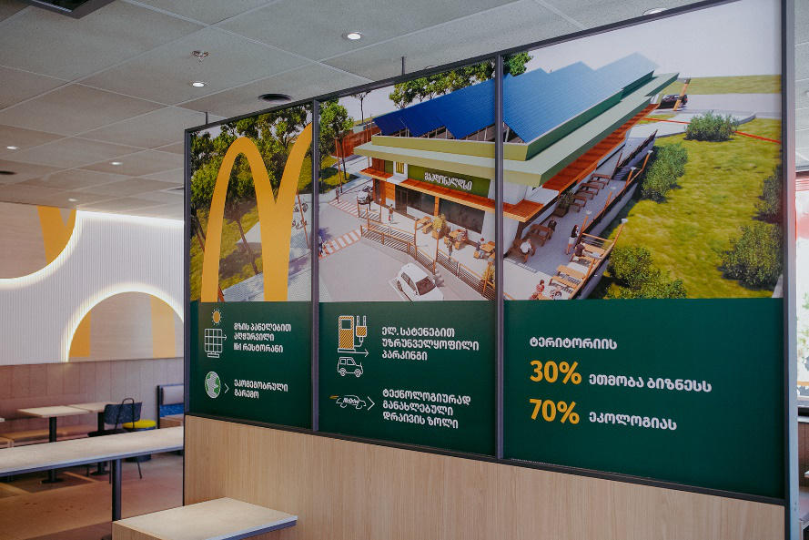 აღსანიშნავია, რომ „მაკდონალდს საქართველო“ როგორც მაღალი სოციალური პასუხისმგებლობის მქონე კომპანია, ზრუნავს გარემოზე და მუდმივად შეაქვს საკუთარი წვლილი გარემოს დაცვის მიმართულებით. ახალგახსნილი რესტორანი ამის საუკეთესო მაგალითია. რესტორნის ტერიტორიის მხოლოდ 30% მოიცავს სარესტორნე სივრცეს, უდიდესი ნაწილი - 70% კი სრულად ეთმობა რეკრეაციულ ზონას, რაც საბოლოო ჯამში, ქალაქის იერ-სახის შენარჩუნებასა და მწვანე ზონების განვითარებას უწყობს ხელს.