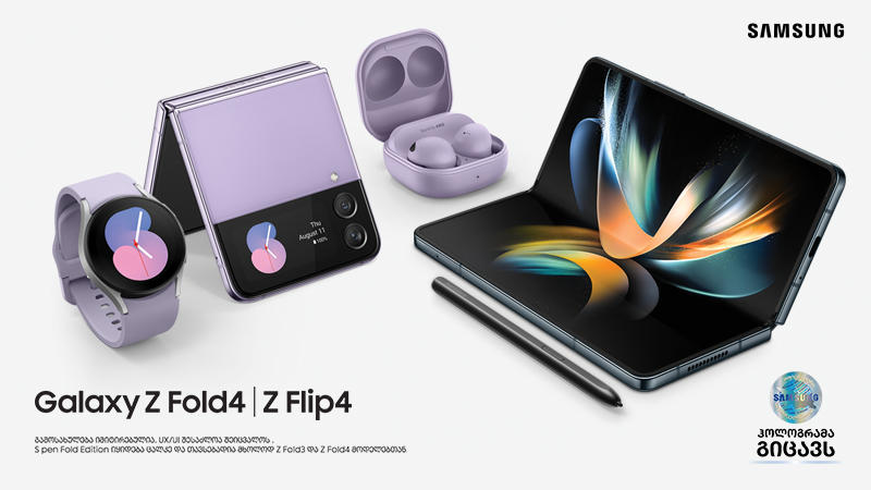 10 აგვისტოს, "სამსუნგ ელექტრონიკსმა" ახალი თაობის, დასაკეც ეკრანიანი სმარტფონები წარადგინა - Galaxy Z Flip4 და Galaxy Z Fold4. გამორჩეული ფორმა, მომხმარებელზე მორგებული გამოცდილება და განახლებული წარმადობა, Galaxy Z სერიის მეოთხე თაობის სმარტფონებს უნიკალურ მოწყობილობებად აქცევს.