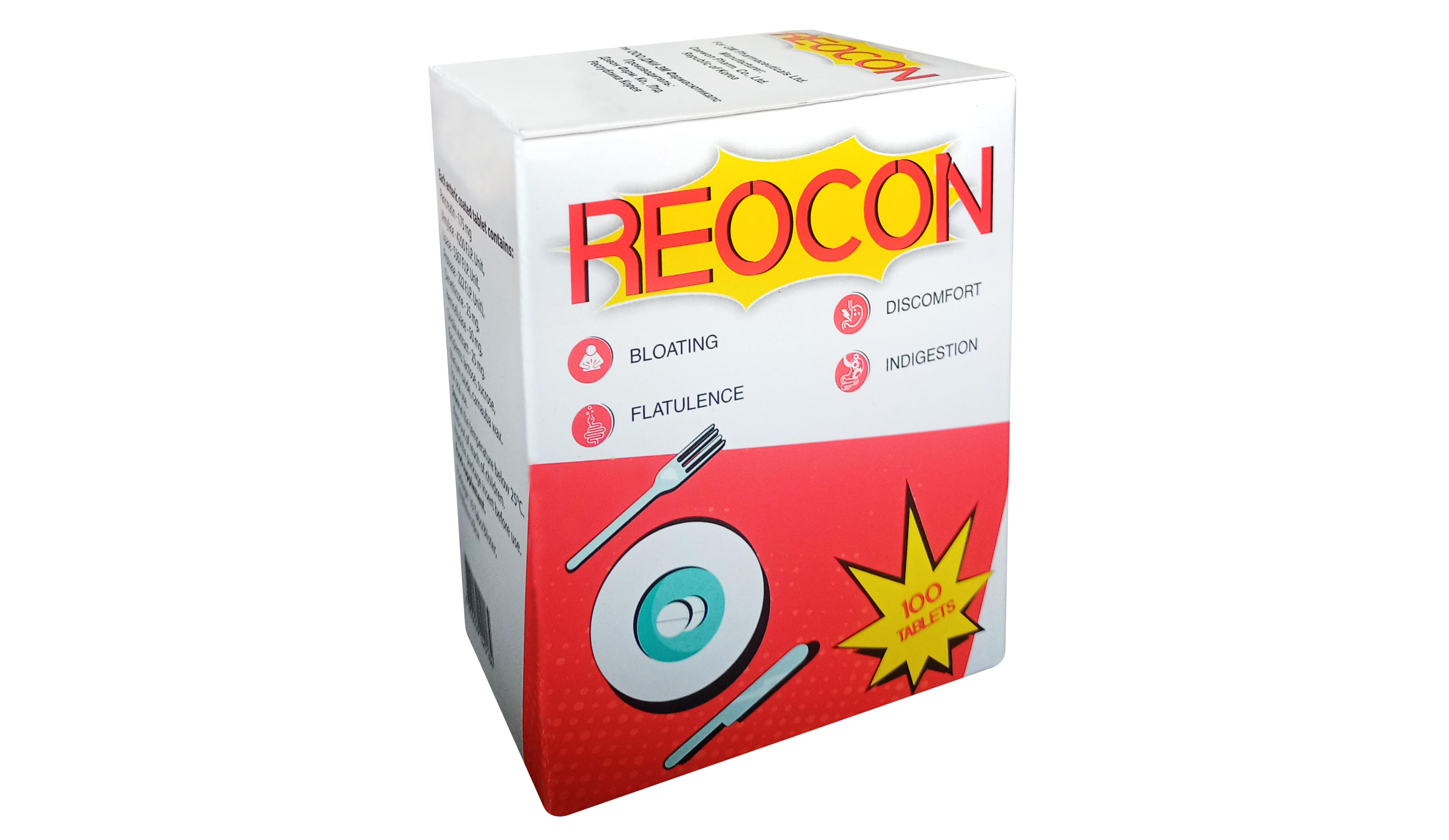 რეოკონი, ჩეულებრივი პანკრეატინისგან განსხვავებით, საკვების მომნელებელ ფერმენტებთან ერთად (ლიპაზა, ამილაზა, პროტეაზა) დამატებით შეიცავს დიმეტიკონს მუცლის შებერილობის საწინააღმდეგოდ, ხარის ნაღვლის ექსტრაქტს - ცხიმების აბსორბციისთვის და ჰემიცელულაზას - მცენარეული ბოჭკოს ადვილად ასათვისებლად.