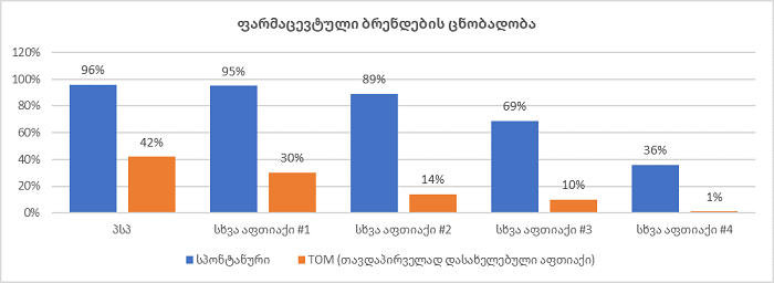 უპირველეს ყოვლისა, PSP-ს ლიდერის პოზიცია აქვს სააფთიაქო ბაზარზე ბრენდების ცნობადობის პარამეტრით. აფთიაქის ხსენებაზე მომხმარებელი პირველ რიგში PSP-ს ასახელებს; ასევე, მომხმარებელი ენდობა და რეკომენდაციას უწევს PSP-ს. სააფთიაქო ქსელებს შორის მომხმარებლის 96%-ს PSP ახსენდება სპონტანურად. PSP ლიდერია ნაცნობი აფთიაქების ჩამოთვლისას პირველ რიგში დასახელების თვალსაზრისითაც (TOM - Top of Mind 42%).