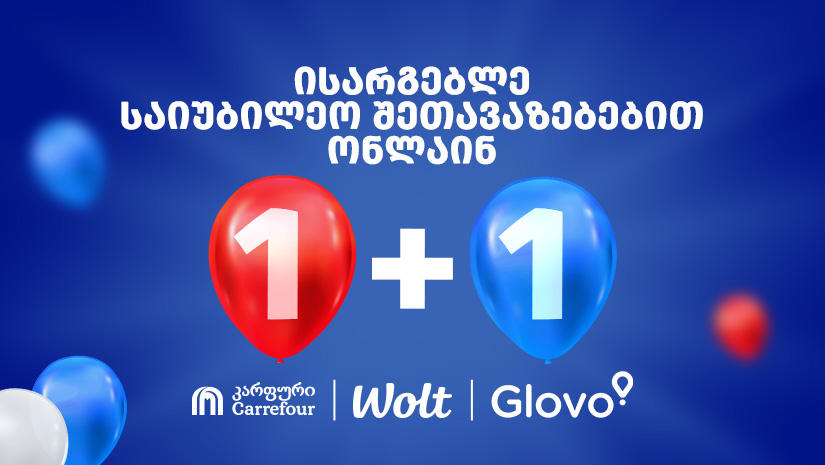 1+1 აქციის ფარგლებში შერჩეული პროდუქტები, დამატებით შეთავაზებებთან ერთად, ხელმისაწვდომია „Glovo“-სა და „Wolt“-ის აპლიკაციებში, რაც მომხმარებლებს საშუალებას აძლევს ონლაინ შოპინგი, კიდევ უფრო, სასიამოვნო გამოცდილებად იქცეს.