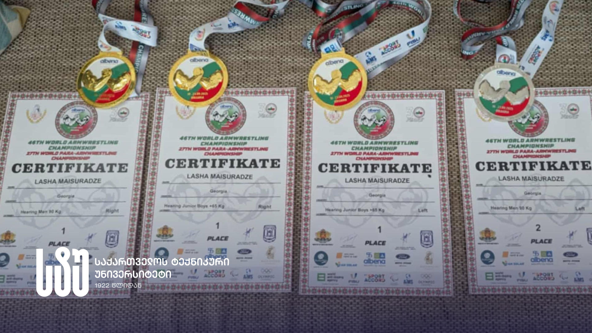 სტუ-ის ცნობით, ბულგარეთში მიმდინარე მსოფლიო ჩემპიონატზე, სადაც 58 ქვეყნის 2000-ზე მეტი სპორტსმენი ჩემპიონის ტიტულისთვის იბრძოდა, პარამკლავჭიდელმა ლაშა მაისურაძემ, მარცხენა და მარჯვენა ხელით ასპარეზობისას, ახალგაზრდებში 60+ და უფროსებში 90 კგ წონით კატეგორიებში სამი ოქრო და ერთი ვერცხლი მოიპოვა.