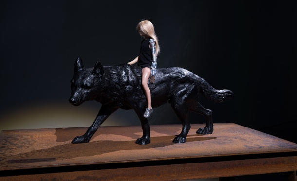 ნამუშევარი წარმოადგენს გოგონას ფიგურას, რომელიც მგლის ზურგზეა დამჯდარი. გოგონა მშვიდი, თითქმის უემოციო იერით არის გამოსახული, ხოლო მგელი — ძლიერი, ბნელი სიმბოლური ფიგურით. ეს გამოსახულება უკვე თავად ქმნის სიმბოლურ „ზღაპრულ სცენას“, რომელიც ერთდროულად უკავშირდება ბავშვობის სამყაროს, მითოლოგიას და ქვეცნობიერს. როგორც ვეკუას სხვა ნამუშევრებში, აქაც იგრძნობა ერთგვარი საზღვარი რეალურსა და წარმოსახვით სამყაროს შორის. ვეკუასთვის მგელი ასოცირდება როგორც საფრთხესთან, ასევე ბუნებრივ ძალასთან. გოგონა კი სიმშვიდის, სუსტი არსების სიმბოლოა. მათი ერთიანობა გვიჩვენებს ადამიანის და ბუნების, სისუსტისა და ძალის ერთდროულ თანაცხოვრებას. ვეკუას შემოქმედებაში ხშირად იკვეთება ომისა და დაკარგული სამშობლოს თემები. აქაც შეგვიძლია დავინახოთ ადამიანის დაუცველობა ძალადობრივ გარემოსთან მიმართებით. ეს ნამუშევარი შეიძლება ჩაითვალოს მეტაფორად ადამიანისა და მის ირგვლივ არსებული ძალების დაპირისპირებაზე. გოგონა მგელზე თითქოს პირადი ისტორიების, ნოსტალგიისა და კოლექტიური მითების ერთობლიობას ატარებს.