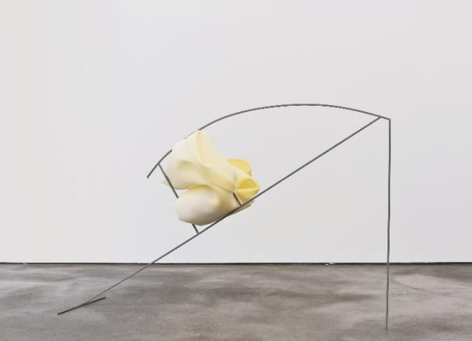აღნიშნული ნამუშევარი შედგება მეტალის თხელი კონსტრუქციისგან, რომელიც ქმნის მსუბუქ, მინიმალისტურ ჩარჩოს. ჩარჩოში ჩასმულია რბილი, მოყვითალო-კრემისფერი მასალა (ტექსტილი), რომელიც თითქოს შემთხვევით დაკეცილ-დახვეულია. კომპოზიცია აერთიანებს მკაცრ გეომეტრიას და ორგანულ რბილ ფორმას. რბილი მასალის გამოყენება ქმნის განცდას, რომ ნამუშევარი მუდმივ ცვლილებაშია, თითქოს შეიძლება ნებისმიერ დროს ჩამოიშალოს ან შეიცვალოს. ეს დროებითობისა და დაუმთავრებლობის განცდა ხშირია ჯორჯაძის შემოქმედებაში. მეტალის სტრუქტურა ასოცირდება სიმტკიცესთან, ხოლო ქაფი – ერთგვარ დაუცველობასთან. მათი გაერთიანება გამოხატავს საპირისპირო მდგომარეობების თანაცხოვრებას. ნამუშევარს არ აქვს აშკარა ნარატივი, მაგრამ ის იწვევს ემოციურ ასოციაციებს: შეიძლება წარმოვიდგინოთ როგორც შიდა სივრცის ფრაგმენტი, სხეულის კვალი ან აბსტრაქტული ობიექტი, რომელიც აერთიანებს ყოფითსა და აბსტრაქტულს. ნამუშევარი შეიძლება აღვიქვათ, როგორც პირადი სივრცის არტეფაქტი, სადაც რბილი მასალა სხეულის ან ყოფითი ნივთის კვალს გვაგონებს, ხოლო მინიმალისტური ჩარჩო – სივრცის არქიტექტურულ ჩარჩოს. თეა ჯორჯაძის აღნიშნული აბსტრაქტული სკულპტურა გამოხატავს დროებითობის, დაუცველობისა და კონტრასტის განცდას. რბილი და მყარი ელემენტების გაერთიანებით, ჯორჯაძე ქმნის აბსტრაქტულ, მაგრამ ემოციურად დატვირთულ ობიექტს, რომელიც შეიძლება განვიხილოთ როგორც სხეულის, სივრცისა და მეხსიერების ერთობლიობა.