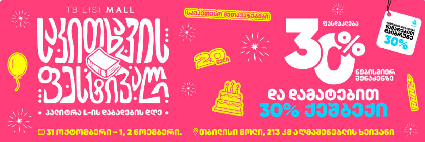 განაახლე შენი ბიბლიოთეკა და იპოვე შენი წიგნი „თბილისი მოლში“ 31 ოქტომბრიდან 2 ნოემბრის ჩათვლით!