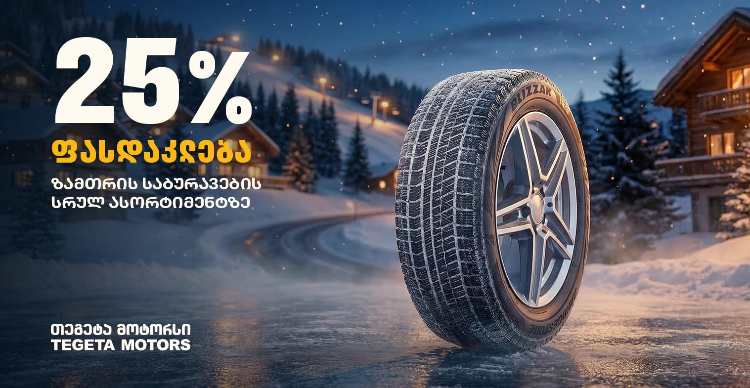 ზამთარი ის პერიოდია, როდესაც ავტომფლობელებმა ავტომობილის უსაფრთხოებას განსაკუთრებული ყურადღება უნდა დაუთმონ. ცივ და წვიმიან ამინდში ავტოსაგზაო შემთხვევების რისკი იზრდება, ამიტომ აუცილებელია, ავტომობილი სათანადოდ იყოს აღჭურვილი. „თეგეტა მოტორსი“ ამჯერად საკომუნიკაციო გზავნილით - „გადააგორე ზამთარი“ მძღოლებს მოუწოდებს, ავტომობილები ზამთრის სეზონის შესაბამისად მოამზადონ. იმისთვის, რომ ეს პროცესი კიდევ უფრო მარტივი და ხელმისაწვდომი გახდეს, „თეგეტა მოტორსის“ ფილიალებში, ასევე აპლიკაციასა და Tegeta Shop-ზე მომხმარებელს საბურავების შეძენისას 25%-იანი ფასდაკლება დახვდებათ.