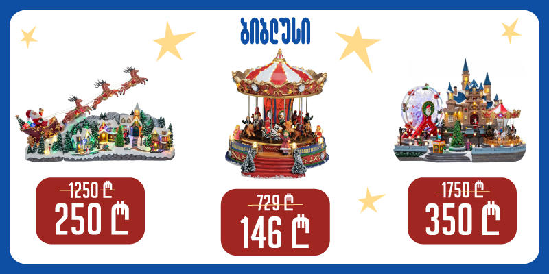 „ბიბლუსში“ საახალწლო პროდუქციაზე ახლა კიდევ უფრი მეტი, 80% ფასდაკლებით ისარგებლებთ. სალიკვიდიაციო შეთავაზება სრულ საახალწლო ასორტიმენტს ეხება. დღეიდან ფასდაკლებით შეიძენთ ნაძვის ხეებს, სათამაშოებს, დეკორაციებს, ჭურჭელს.