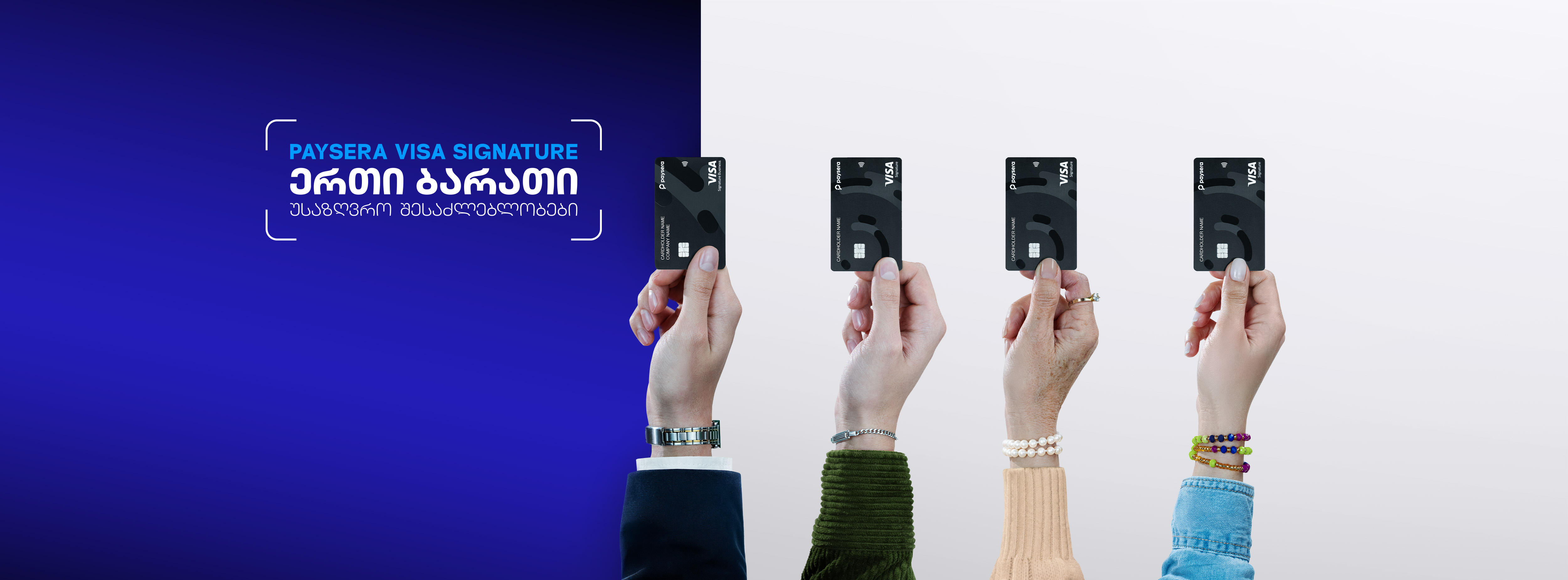Paysera Visa Signature პეისერას პრემიუმ კლასის ბარათია, რომელიც ყოველდღიურ ფინანსურ ოპერაციებს, საერთაშორისო გადარიცხვებსა და სამოგზაურო სერვისების სრულ სპექტრს აერთიანებს ერთ, ხელმისაწვდომ გადაწყვეტაში.