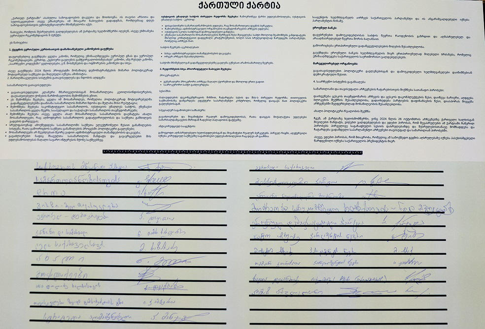 В частности, во дворце Орбелиани «Грузинскую хартию» сегодня подписали следующие политические партии: